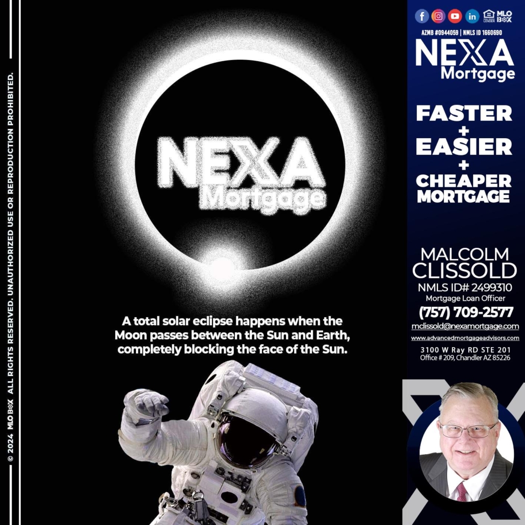 ECLIPSE - Malcolm Clissold -Mortgage Loan OfficerHi, my name is Malcolm Clissold. I’m a Loan Officer with NEXA Mortgage, offering personalized mortgage solutions, fast customized quotes, great rates and service with integrity.