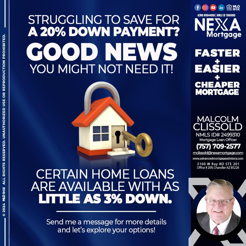 good news - Malcolm Clissold -Mortgage Loan OfficerHi, my name is Malcolm Clissold. I’m a Loan Officer with NEXA Mortgage, offering personalized mortgage solutions, fast customized quotes, great rates and service with integrity.