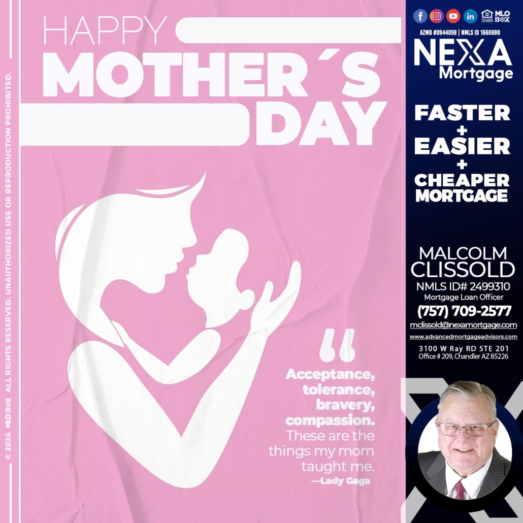 MOTHERS DAY - Malcolm Clissold -Mortgage Loan OfficerHi, my name is Malcolm Clissold. I’m a Loan Officer with NEXA Mortgage LLC., offering personalized mortgage solutions, fast customized quotes, great rates and service with integrity.
